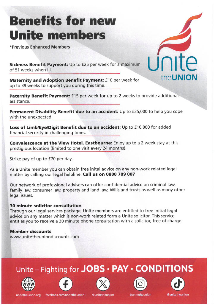 If you recruit a new member please email Ian or Eamon their membership number. We will ensure you are entered into the Christmas membership raffle and, registered on the system as the recruiter to receive a voucher for up to £25 (depending on membership type and qualifying period of 3 months) from Unite. A reminder of some membership benefits: