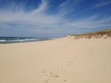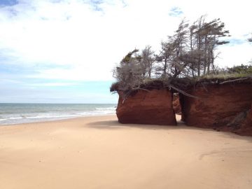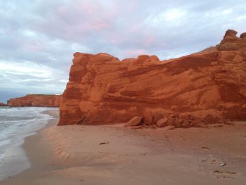 The contours of the islands are continuously shifting as a result of erosion from the sea and wind, and the islands’ dunes are characterized by what a local pamphlet refers to as “mobile stability”. Red sandstone cliffs are constantly being eroded, forming miles of sand beaches. The sand is swept around the perimeter of the islands creating dunes that shift in number and position on a yearly basis. The processes at the meeting point between land and sea became the focal point of the work that I created and presented during the residency, entitled “Compositional Routes of the Magdalen Islands”.