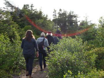 In the second week, using only the sounds I had recorded along the coast I composed a sound work to be listened to/performed by up to 15 people at a time using 8 radios during a 45 minute group walk through the chosen site. The piece was created and presented with a special attention to situated composition, using the place to guide compositional procedures and the collective performance of the work.