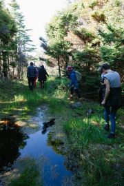 During the first week I made hours of audio recordings in the littoral zone all around the islands. These recordings consist largely of the infinite variety of sounds produced by water meeting various surfaces and coursing through cracks, crevices, and caves, moving stones, and rolling onto sand beaches. During this week I also explored the interior of the islands and chose a secluded network of paths that became the site for the work.