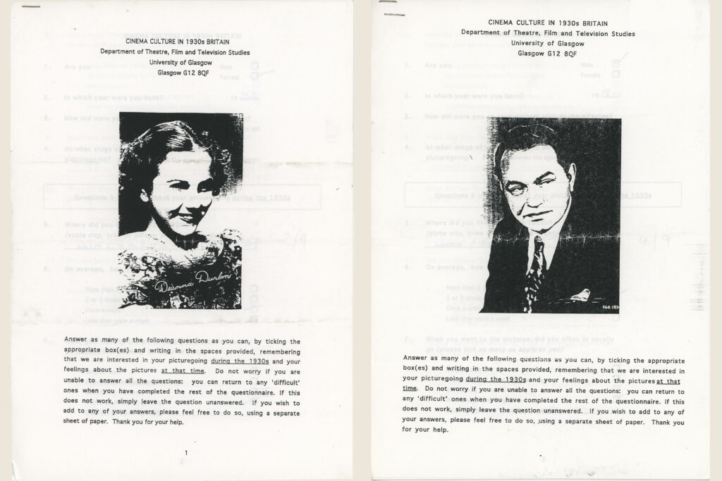 Last Autumn I posted an explanation of how the interviews conducted as part of Cinema Culture in 1930s Britain were planned and managed (‘Annette Kuhn talks about a key aspect of CCINTB’s research design’, 23 October 2020). The other significant element in the project’s memory work with 1930s cinemagoers was a questionnaire survey. The survey was not part of the original plan, but came about as a result of the overwhelming response received to calls for potential interviewees. Hundreds of letters, enquiries, and offers of information poured in from all over Britain, and it became apparent that the project had generated much more interest than could be accommodated through interviews alone. Our funder, the Economic and Social Research Council, agreed to the plan to invite those correspondents who were not selected for interview to take part in a postal questionnaire survey.