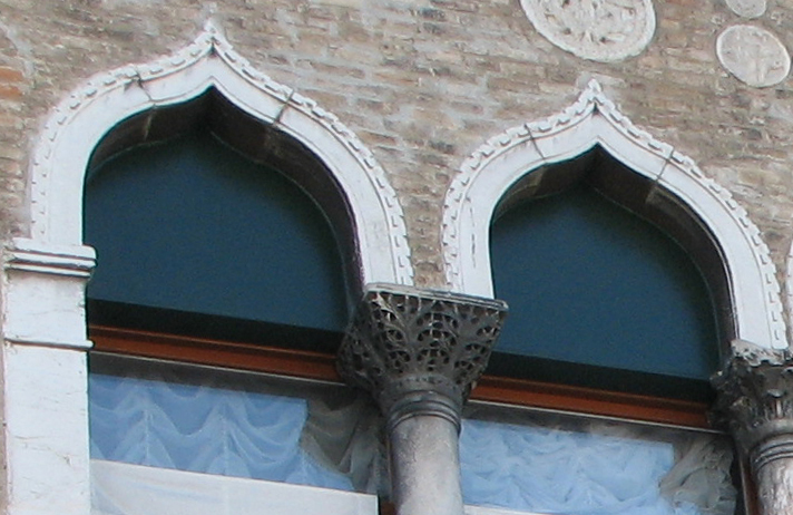 The Remer House in Venice has what is apparently a horseshoe arch which might have provided for Ruskin evidence of Arabic influence: