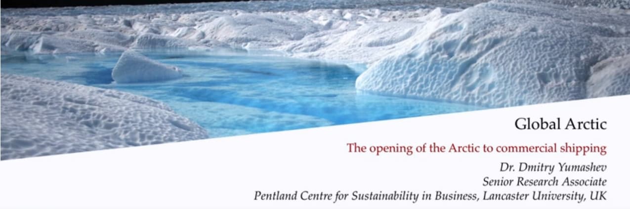 As part of the MOOC, Pentland Centre member, Dr. Dmitry Yumashev, presents a lecture on “The opening of the Arctic to commercial shipping”. It introduces the audience to the past, present and future of Arctic shipping under climate change projections, describes different Arctic sea routes and their importance for the world, lists the main factors determining the opening up of the Arctic waters to commercial shipping, and discusses the impacts of growing shipping on the Arctic and globally. The focus is on the likely winners and losers from the changing trade patterns and climatic feedback associated with the increasing traffic through the Northern Sea Route. To view the lecture, click on the image at the top of the article.