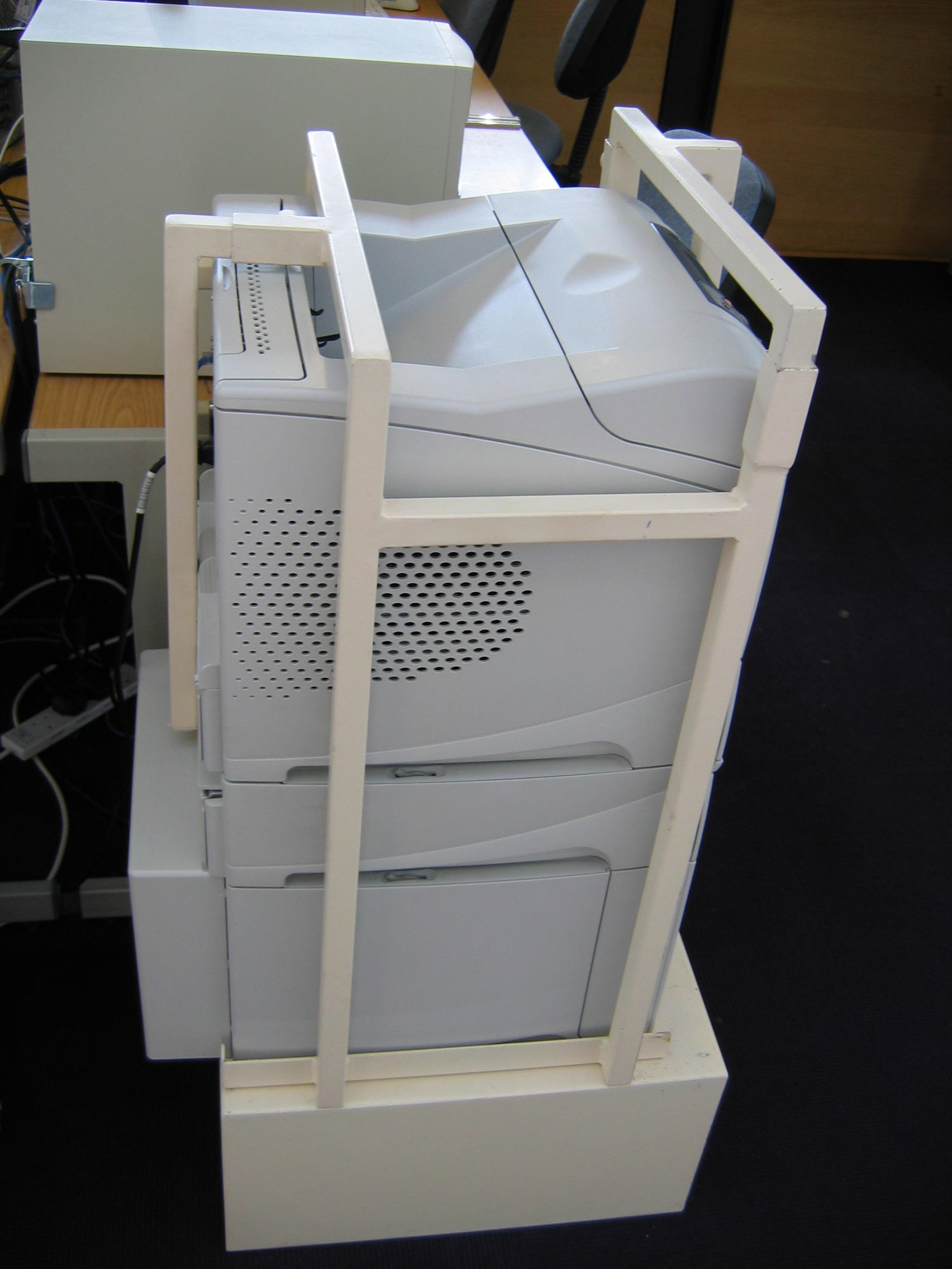 The above are HP 4350TN printers with extra 1500 sheet tray, HP 4650, HP 5500HDN printers, we have also ordered HP 4300,9050,5550 cages
