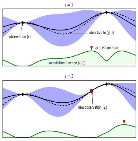 measure as a Gaussian Process. Each evaluation will change the mean and variance in different areas, and this can then be used to