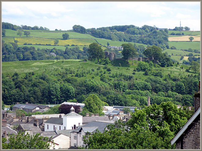 From the road climbing up to Scout Scar towards Underbarrow. The old centre of Kendal with the Moot Hall can be seen in the foreground.