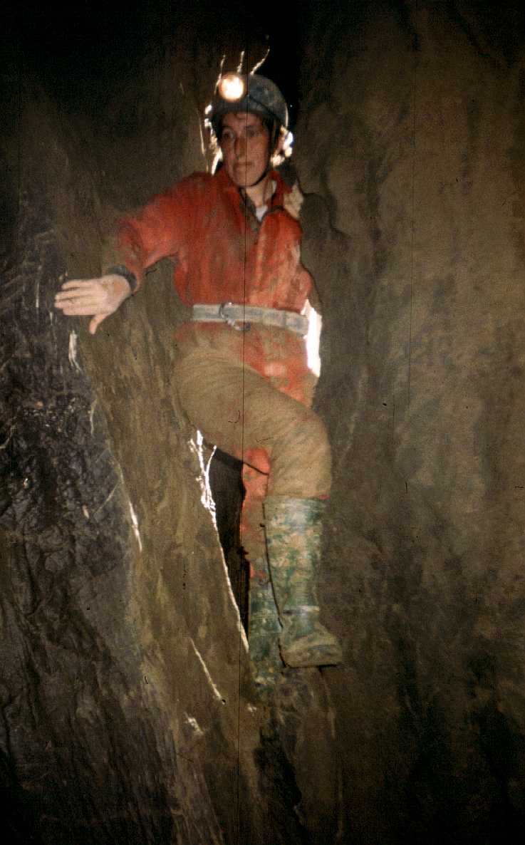 The main route from the base of the pitch is a climb down following the stream from Misty Series, which soon disappears in a clean-washed pit in the floor at a junction. The pit has been free-climbed down for 15m to where it closed off. The main way on is a climb up into a narrow rift to the right hand side, but by following the continuation of the rift up a climb and over another pit, St Anns Passage is gained, first entered in the summer of 1996. Two hundred metres of narrow rift containing a good draught leads via several small phreatic chambers and crawls to a dug boulder choke. This contains a squeeze" under a loose block and care must be taken. A breakdown chamber beyond contains several choked pits and there are two ways out, both of which draught. Straight ahead with the main draught a continuation of the narrow rift gains a complex area containing an upper, low phreatic passage which seems to follow the rift below. The upper level eventually stops at a roof collapse with a possible dig to a continuation that draughts. The rift at floor level draughts strongly and continues very tight and needs pushing. A hole in the left hand wall of the chamber after the dug choke leads past two side passages which both soon get too small without more digging. Traversing over a rift, a side passage on the right has been pushed to a tight continuation which can be dug. This contains a reasonable draught. Further up the passage a low chamber with a lower level is reached. Here, and straight ahead, several climbs and avens exist (30m+?) which need ascending. The most northerly contains a slightly draughting calcite hole. A hole in the left hand side of the chamber Pauls Putrid Passage leads via an extremely muddy rift into a boulder choke with several ways off - all of which soon close down.