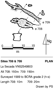 The lower of two caves. A climb up to a single passage which becomes too tight with a narrow rift in the roof. J. Thorp found a polished stone adze here in 1989. Resembling the polished stones axes of Chalcolithic age, it may be a unique find in Cantabria. A line diagram is to be found here.
