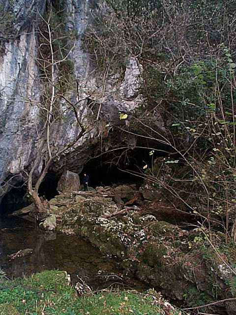 The stream sink which is Agua entrance. The mill race wall enters the cave from the bottom right of the photo. (photo: Juan Corrin)