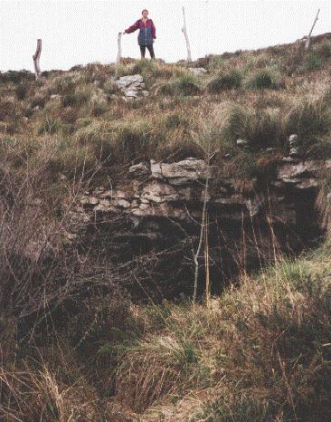 Penny Corrin above the impressive entrance shaft to Torca de la Cruz Llorada, site 66. (photo: Juan Corrin)