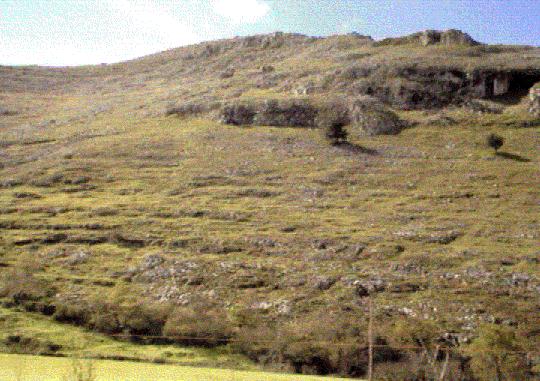The entrance to Coteron (264) lies in the top centre of the picture above the two clumps of trees near the top of the hill (photo: Juan Corrin)