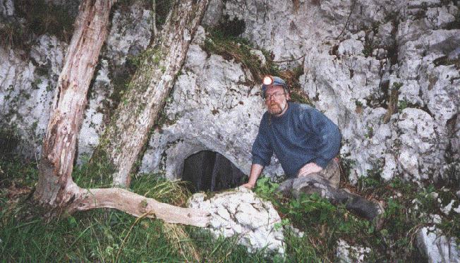 Juan Corrin outside the small entrance to La Cuvia de Seldesuto, site 370.