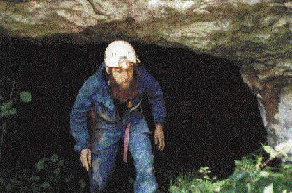 Andy Quin emerging from Cueva de la Helguera, site 731,