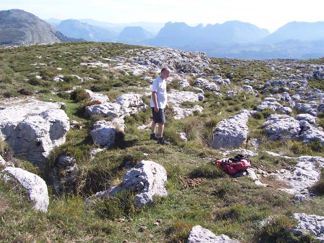 top: Juan Corrin standing in front of the shaft faintly labelled M44. The second shaft is in the left foreground. bottom: Looking from the south. (photos: Penny Corrin)
