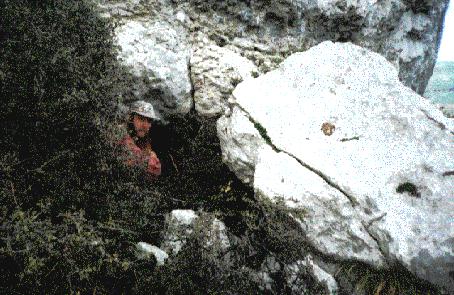 Andy Quin in the entrance to site 1101, well concealed by a thorn bush.