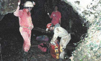 Lank Mills, Pete Eagan and Pete Smith (rear) after the first exploration in the extended Cueva de German. (photo: Juan Corrin)