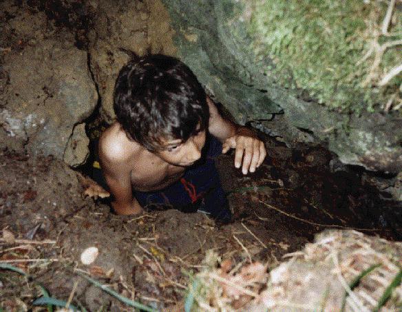 Benjamin Davis emerges from the newly excavated, strongly draughting entrance of Torca Lorca, Seldsuto. (photo: Juan Corrin)