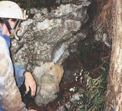 Pete Smith at the entrance to site 1264 with a removed boulder.