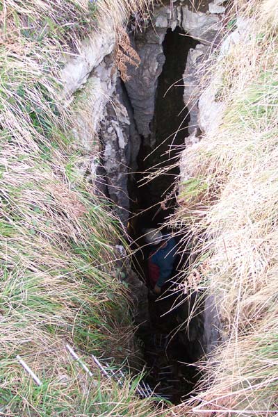 3 views of the entrance to site 1272 top: distant, with the recently burnt N Vega slopes in the background (photo: Dave Cooke) middle: fenced entrance shaft (photo: Dave Cooke) bottom: view down the shaft (photo: Les Williams)