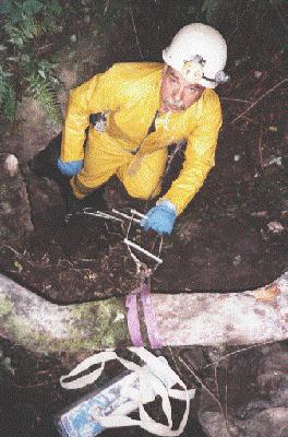 Bill Booth on the entrance climb into Cueva Lammas, site 1325.