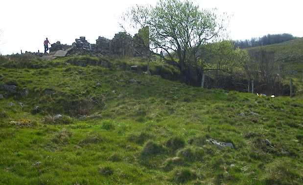 The entrance to site 1385 next to a ruined barn.