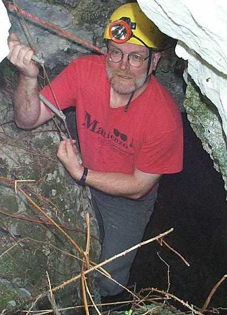 Juan Corrin descending the short pitch into site 1460.