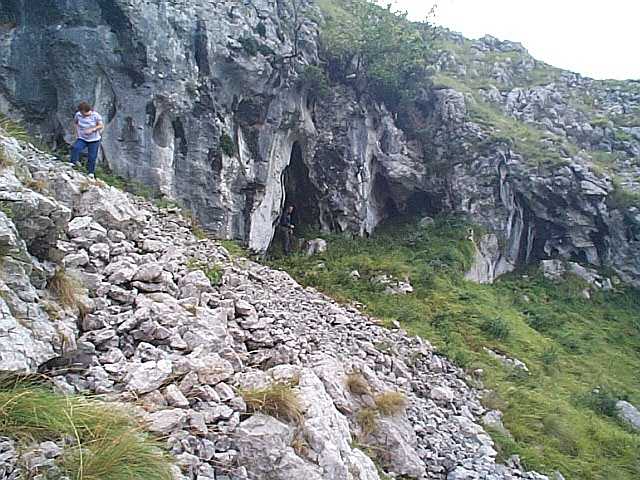 Pete Smith in the lower entrance of site 1538. The higher entrance is up to the left of the photo. (photo: Juan Corrin)