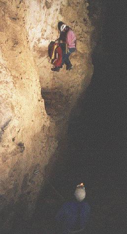 Andy Quin bolting to an alcove above the Sima de las Chinas pitch in Codisera.