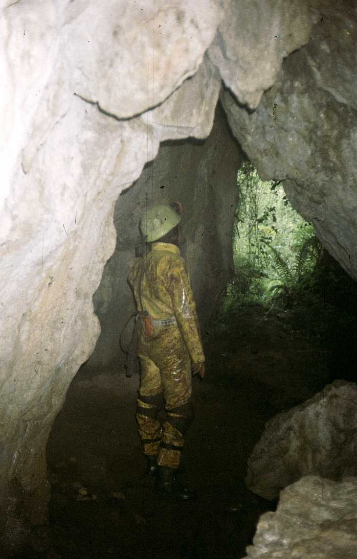 Vicky Stratton in the entrance passage to site 154, Cueva 77A.