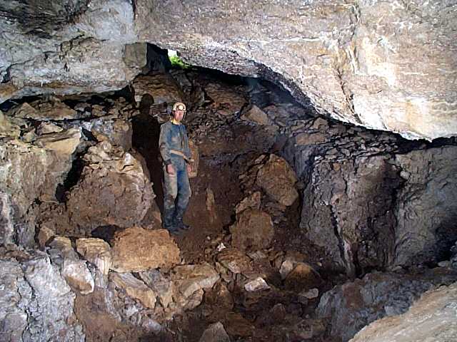 Pete Smith just inside the entrance of site 179. The pottery lies to his right.