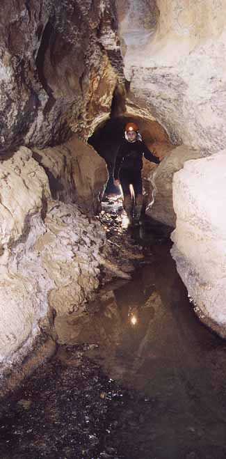 Jenny Corrin in the streamway of site 207, Fuente de la Cuvia.