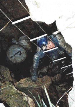 Terry Whitaker emerging from the stench-ridden gloom of site 707.