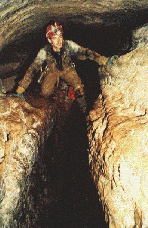 Andy traversing above the stream in Simon 2.