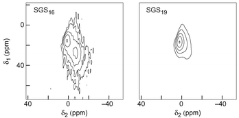 Amorphous sodium gallium silicate materials are isolated after short periods of heating a gel of composition Ga2O3:SiO2:4NaOH:80H2O at 100 °C. On extended heating (periods in excess of 24 hours), the crystalline zeolite gallium hydroxosodalite is produced from the reaction mixture. We have studied the materials using 23Na (I = 3/2) MAS and multiple-quantum MAS (MQMAS) NMR spectroscopy in order to extract information about the local environment of sodium in the amorphous solids, and thereby gain information about the role of sodium during the crystallisation of the zeolite. The average 23Na isotropic chemical shift, δiso, and the quadrupolar parameter, PQ = CQ(1 + η2/3)1/2, were evaluated by analysis of the two-dimensional MQMAS spectra. In addition to the sodium gallium silicate materials, a number of crystalline sodium silicates, aluminates and gallates were also studied and their NMR parameters compared with literature values and related to crystallographic data describing the local environment of the sodium atoms. Although no simple correlation is known between 23Na NMR parameters and the coordination number or average sodium-oxygen interatomic distance, a general trend of increasing δiso with decreasing coordination number and interatomic distance is apparent. The data from the amorphous sodium gallium silicates strongly suggest that even after very short periods of heating the local environment of sodium is very similar to that found in the crystalline zeolite product. Additional 71Ga (I = 3/2) MAS NMR spectra were also recorded from the amorphous samples to provide information on the local gallium environment and these show the presence of tetrahedral gallium, as in the crystalline zeolite, even in the samples prepared after the shortest period of heating.