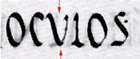 As with Roman Square Capitals, there is no distinction between U and V. The two words here are 'DIVINI' (as in our divine), and 'OCULOS' (as in our oculist). | ![]() |