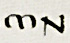upright descender, like our modern lower-case q: this is possibly the tail of the Q realigned. |