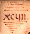 The first letters of each verse appear in alternating colours, red and blue. This might well be mnemonic in function. |