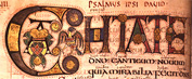 of the psalm. These are of a different size and colour to the body of the text. The alternating colours (red and blue) may be mnemonic, or have something to do with the music. |