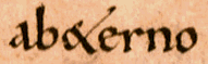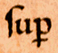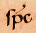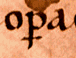 ![]() | p with a stroke through the descender stands for per, as in super (section 1, line 2, and section 5, line 10) and opera (section 3, line 4). | ![]() |