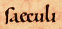 ![]() | Some common words have their own abbreviations: among these is sclm for saeculum, 'era' (section 5, line 8). The full word appears next to it, in the genitive case as saeculi. | ![]() |