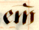 This is the familiar line over a letter to indicate that an m or n has been left out. Here the word is enim. | ![]() |