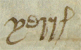 And this is the familiar sign for per. In English, the sound er was becoming [ar] in some dialects. This can therefore stand for either per or par. You have to work out from other documents from the same area whether he was more likely to standardise on perosche or parosche, 'parish'. The etymology makes par more likely here, but there is no certainty that this is what he meant. | ![]() |