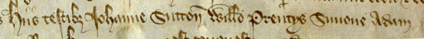 | Hiis testibus Johanne Sutton Willelmo Prentys Simone Adam |