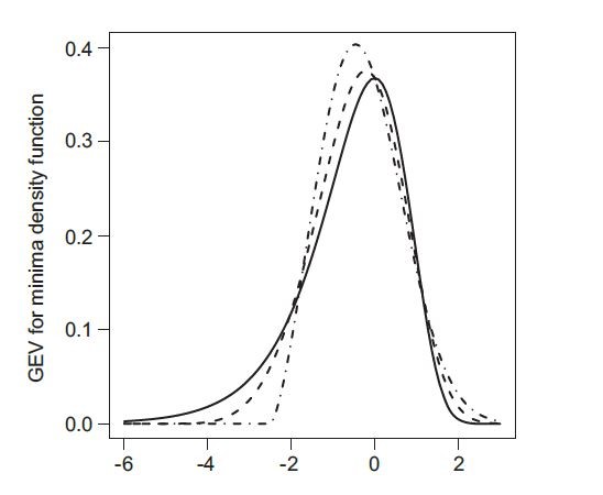 $$ G(x) = 1 - \exp \left[ -\{ 1 - \xi(x - \mu)/\sigma\}_+^{-1/\xi} \right],$$